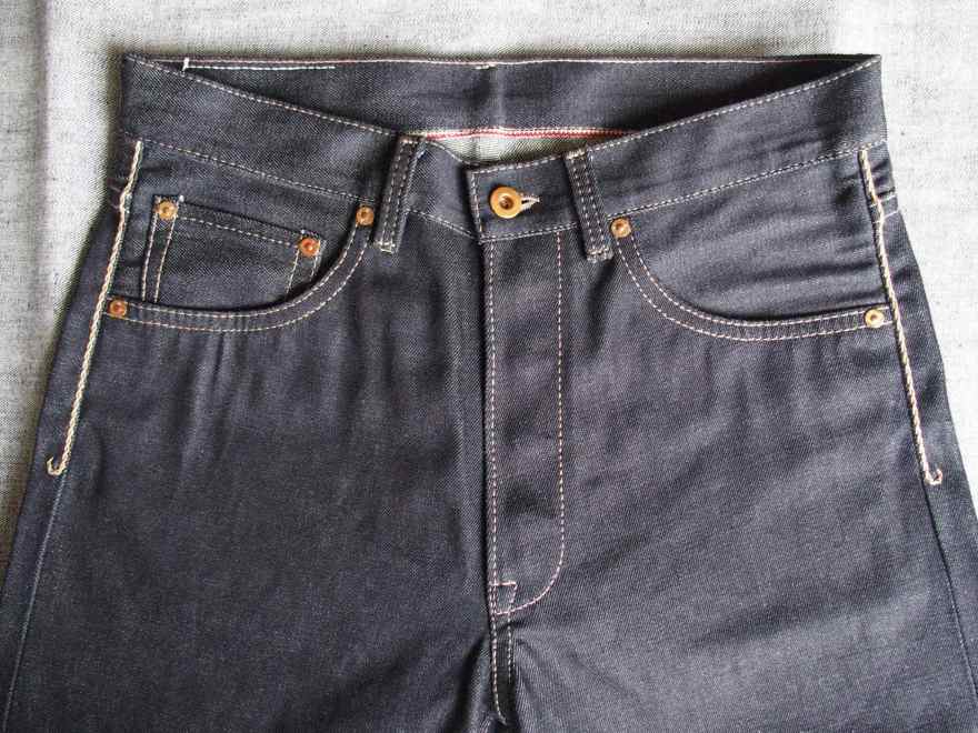 As the double “x” indicates, the KRKxx0007 is a special model made using a non standard denim fabric. It is a 13 ounces, deep dark blue denim. The selvedge is quite bold, with a wide blood red stripe that runs right on the edge. California, San Joaquin Valley cotton, made in Japan by Nihon Menpu Mills. A deep blue denim perfect for enjoying deep fades.