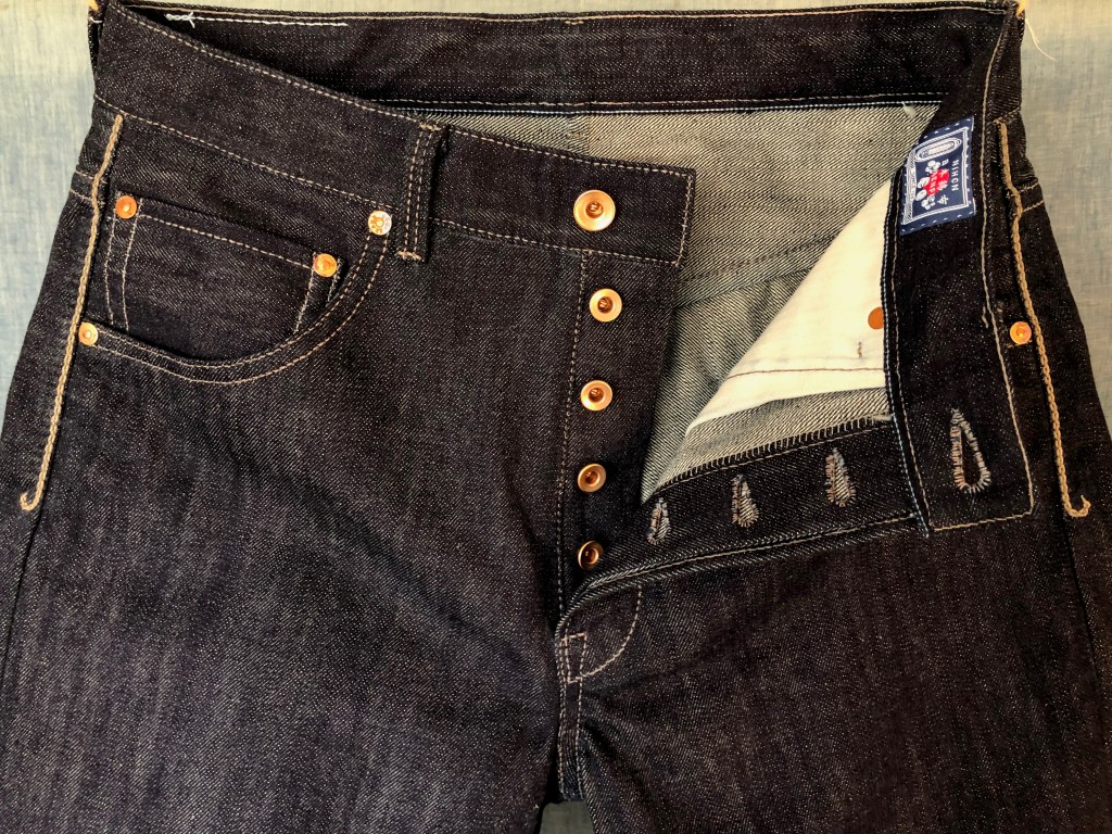 The KRKxx0036 is a special pattern model, made using a denim fabric by Nihon Menpu Mills. This is an exclusive 14 ounces, natural indigo “aizome” dyed denim. The “aizome” color is a vivid blue with purple hints hue that can be only found in the traditional Japanese cloth. Real “aizome” denim is extremely rare in the market, the holy Grail for the denim lovers.